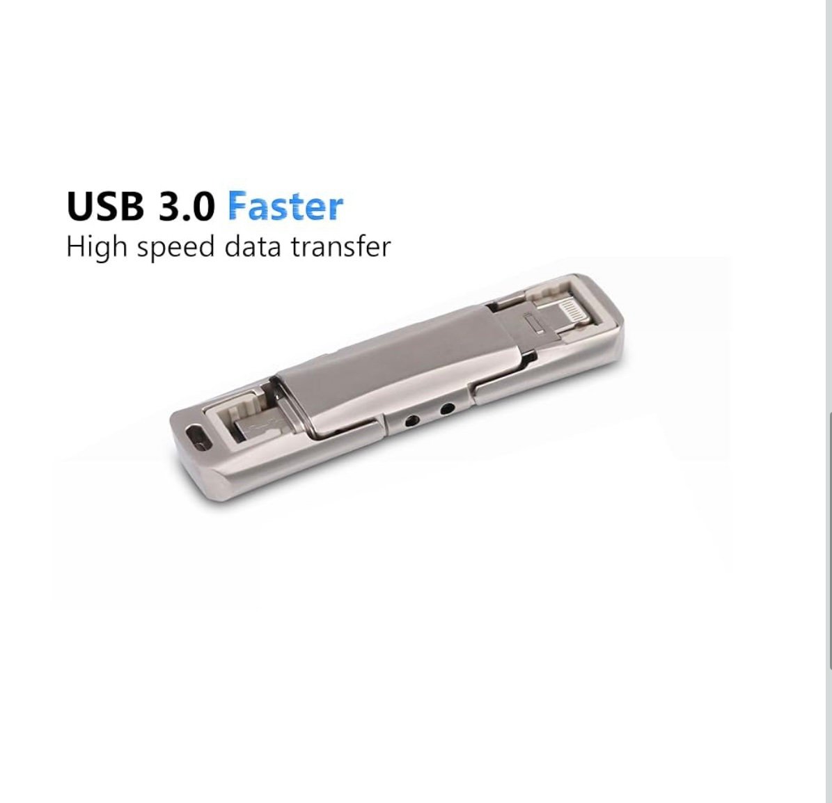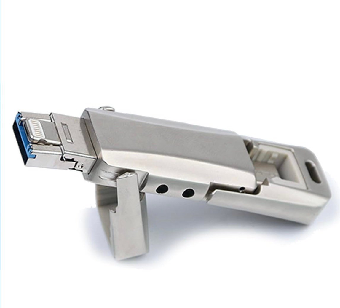 2 TB 3-in-1 Flash Drive for iPhone, Android & PC, USB A, Lightning & USB C Ports